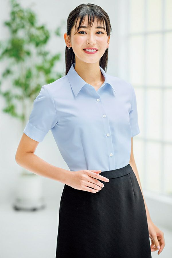 レギュラーカラーシャツ[女性](半袖・無地)