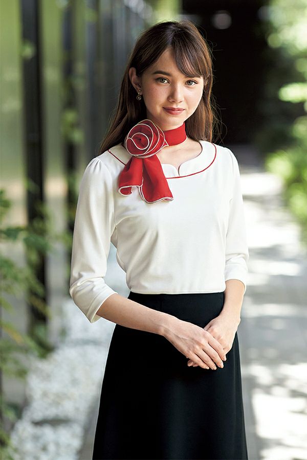 レギュラーカラーブラウス[女性](七分袖・無地)